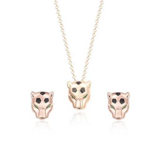 Designer Fashion Style Earrings Necklace Inlay Cubic Zircon Black Enamel Spots Leopard Panther Jewelry Sets
